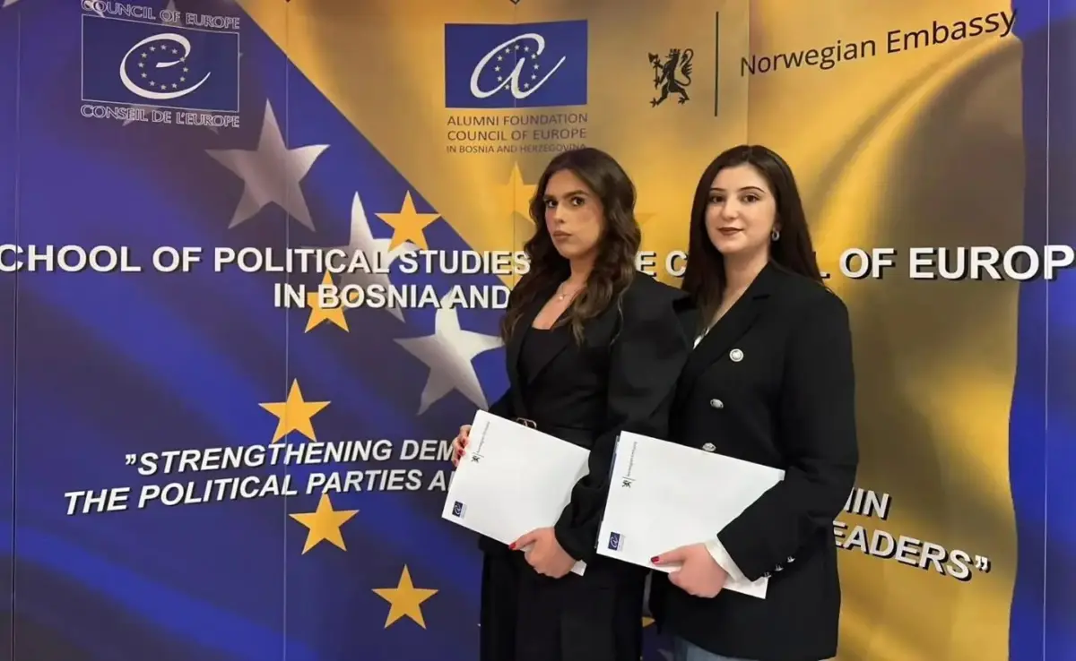 Članice Mladeži HDZ-a BiH, Nikolina Perković i Ana Šego, uspješno su završile program Političke škole Vijeća Europe, koji je zaključen završnom aktivnošću u Strasbourgu tijekom World Forum for Democracy 2025 održanog od 5. do 7. studenog 2025. godine.